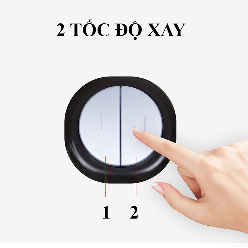 Máy xay thịt tôm cua cá rau củ 2 lưỡi kép, 2 tốc độ, an toàn chống đổ và chống giật, thố thủy tinh dày 1cm