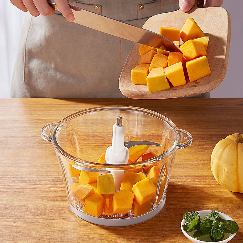 Thiết Bị Điện Gia Dụng > Đồ gia dụng nhà bếp > Máy trộn thực phẩm || Máy xay thịt tôm cua cá rau củ 2 lưỡi kép, 2 tốc độ, an toàn chống đổ và chống giật, thố thủy tinh dày 1cmCòn hàng