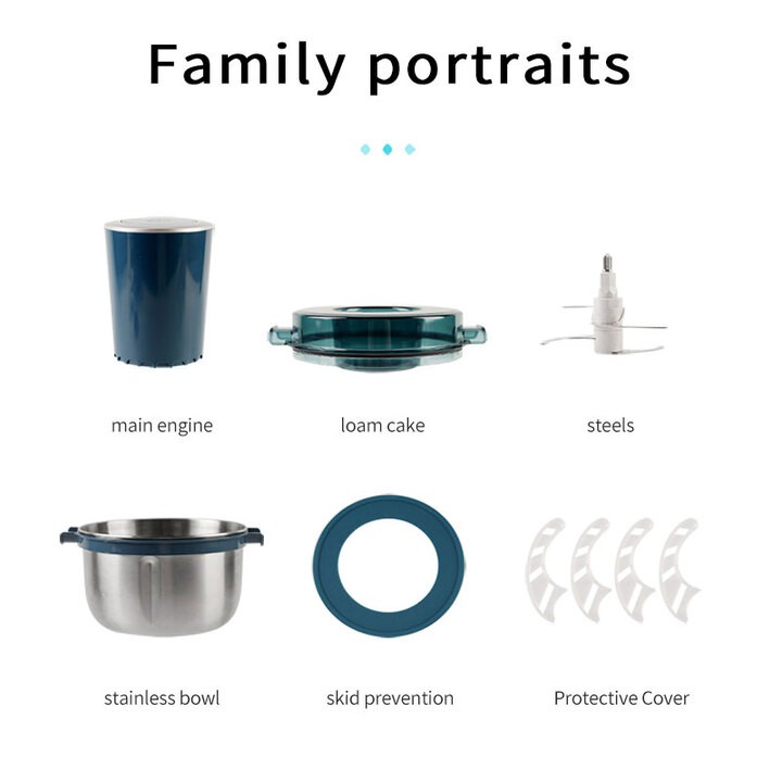 Bộ sản phẩm bao gồm: 01 cối inox (2l) - 01 cục thân máy - 01 nắp cối - 01 dao xay - 01 lót cối chống trượt - 04 miếng nhựa bảo vệ lưỡi dao.