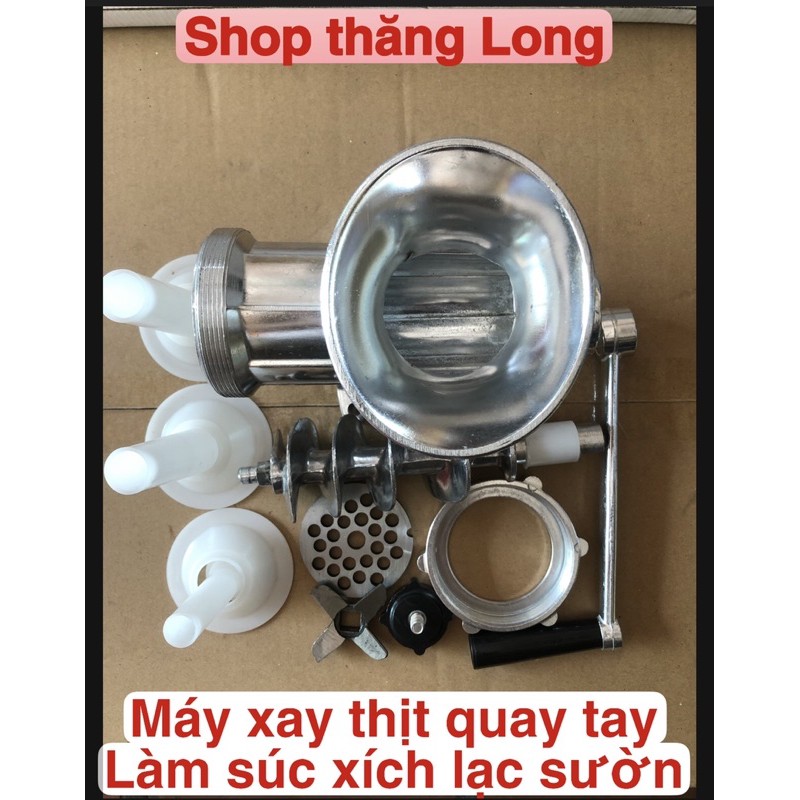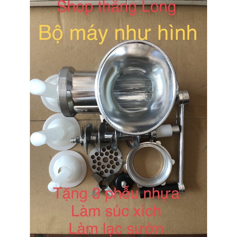 Thiết Bị Điện Gia Dụng > Đồ gia dụng nhà bếp > Máy chế biến thực phẩm & Xay thịt || Máy xay thịt xay cua làm súc xích - làm lạc sườn bằng nhôm quay tay máy 12(kèm 3 phễu nhựa )Còn hàng