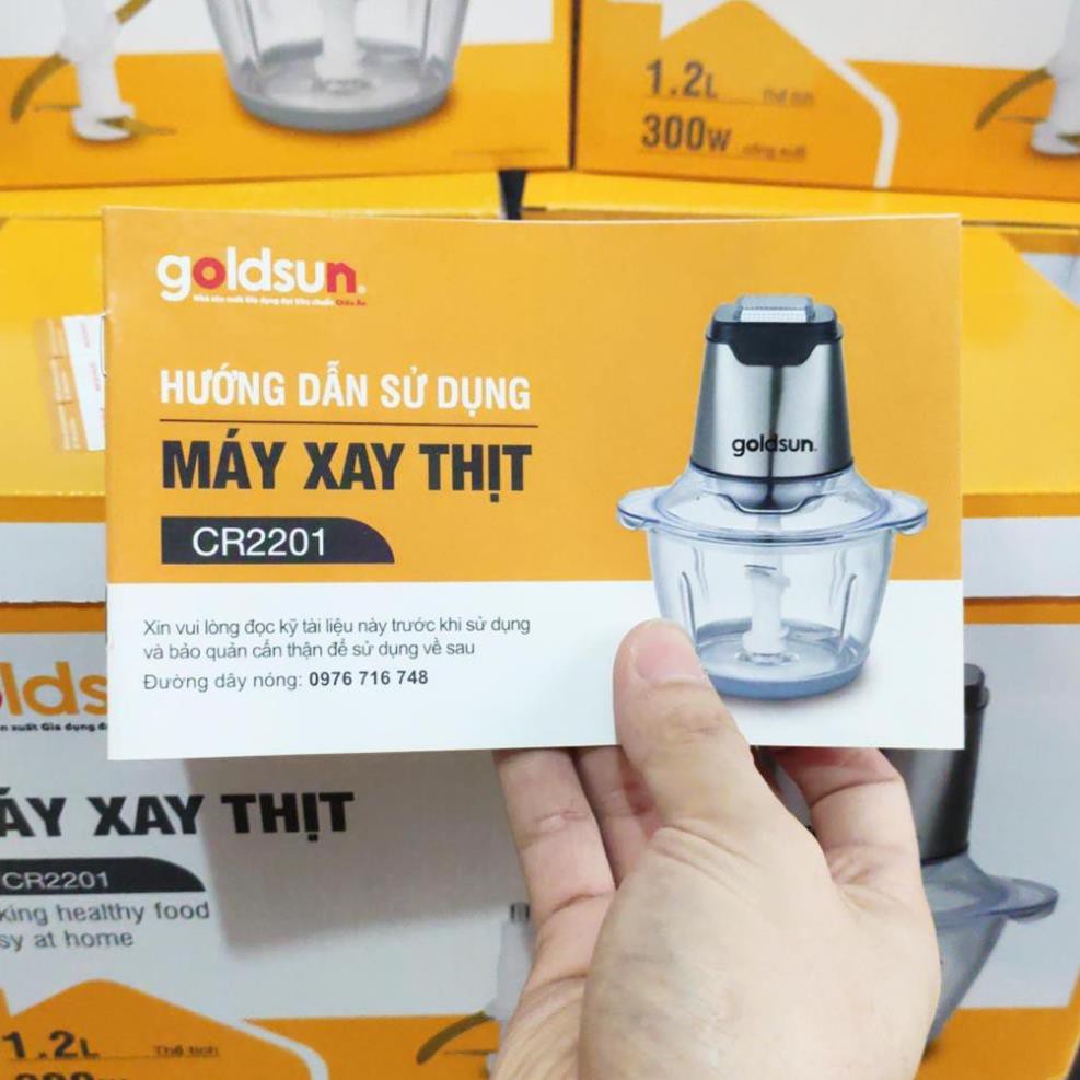 Giới thiệu Máy xay thịt ,xay đa năng GOLDSUN CR2201, dung tích 1.2L, Cối thủy tinh, Lưỡi dao kép, BH chính hãng 1 năm
