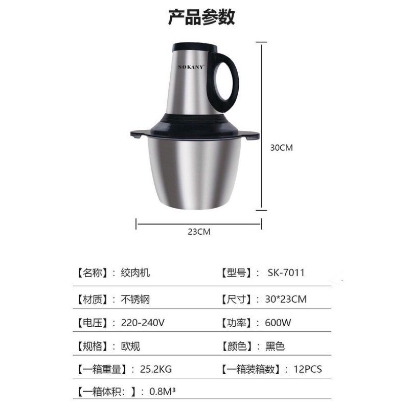 + Tên sản phẩm: Máy xay thịt inox Sokany SK-7011