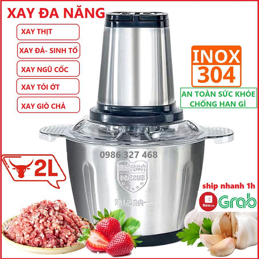 Máy xay thịt xay rau củ(2L)-XayThịt Đa Năng Cối Inox 304 Lưỡi Dao Thép Không Gỉ Xay Sinh TốThịt Cá, Rau Củ Hoa Quả
