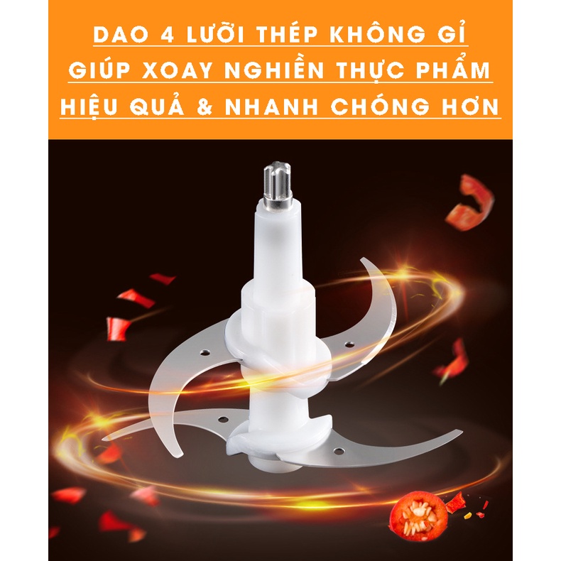 -Lưỡi xay kép 2 tầng giúp xay nhuyễn mịn các loại thực phẩm, cối xay dung tích 1.8L, dễ dàng tháo lắp và vệ sinh sau khi sử dụng.