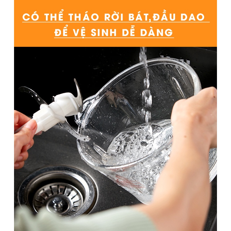 Máy Xay Thịt, Xay Thực Phẩm Cầm Tay 300W Đa Năng Tiện Dụng Cho Gia Đình - Cối Thủy Tinh Dày 1,8L
