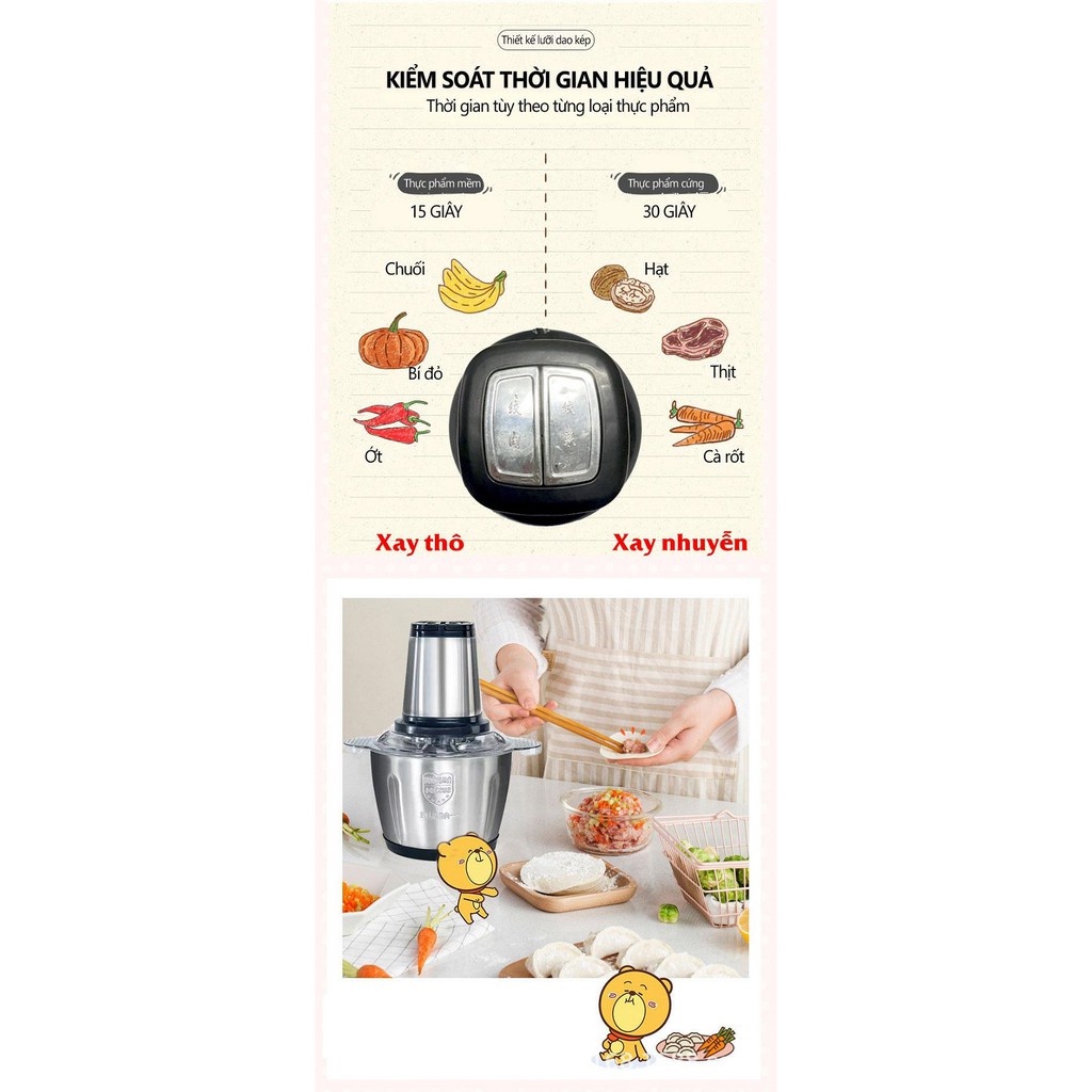 Máy Xay Thịt Xay Thực Phẩm Cối Inox 4 Lưỡi Đa Năng - Máy Xay Tỏi Ớt Bảo Hành 6 Tháng - Máy Xay Kinosun