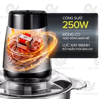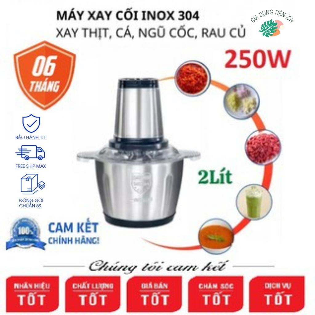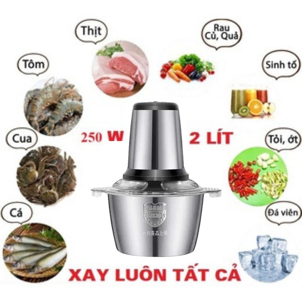 Máy xay thịt, xay thực phẩm đa năng cối inox 304 và nhựa ABS dung tích 2L, 4 lưỡi dao sắc bén bằng thép không gỉ