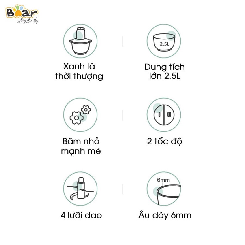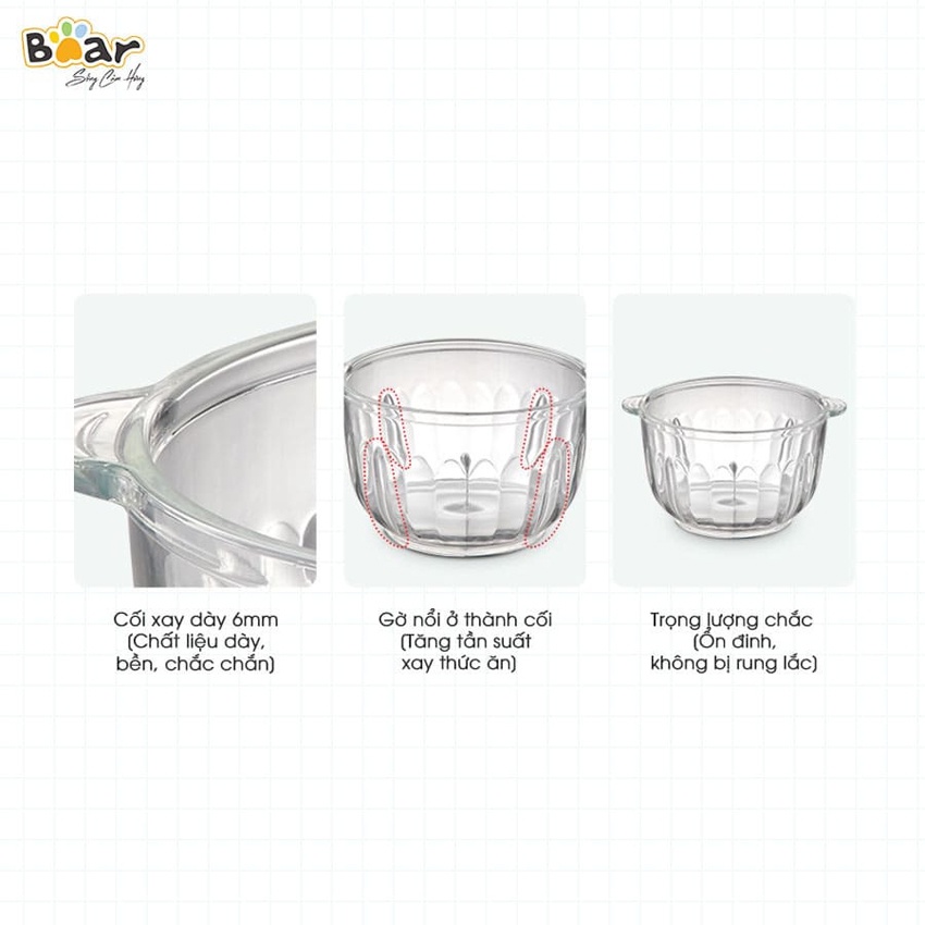 MÁY XAY THỊT XAY THỰC PHẨM ĐA NĂNG BEAR, cối thủy tinh 2L - 2.5L (Hàng chính hãng 1 đổi 1 trong 30 ngày, bảo hành 18 tháng) - HomeMartTHÔNG TIN SẢN PHẨM