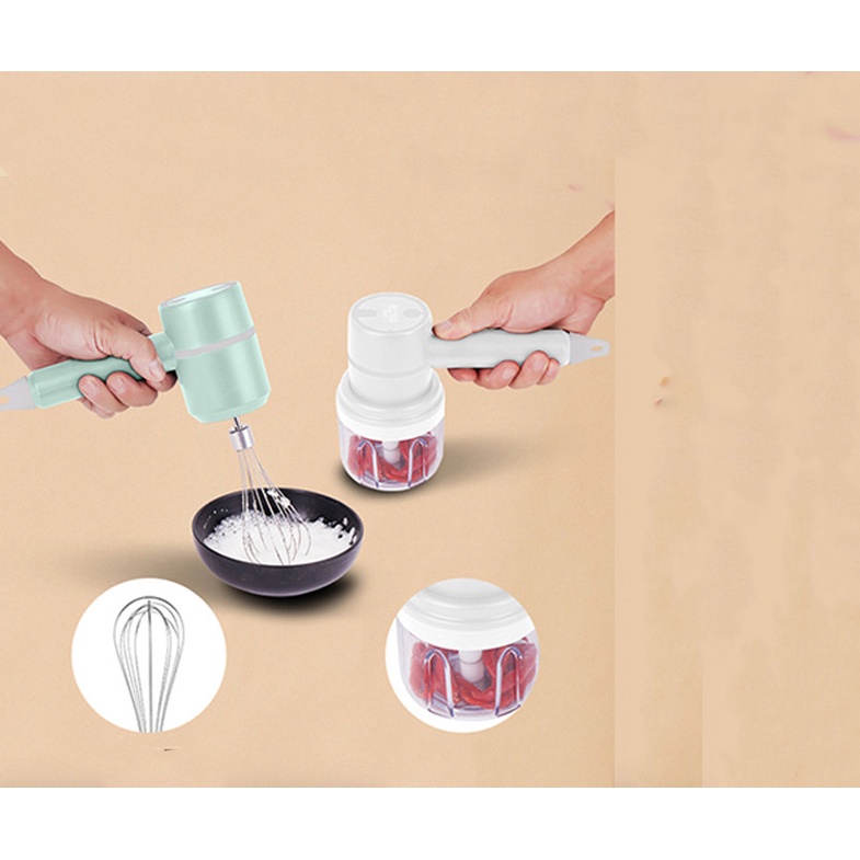 Máy Xay Thịt Xay Tỏi Ớt đánh trứng Loại 3 Lưỡi 250ml, Đa Năng Sạc USB Tích Điện Siêu Tiện Lợi