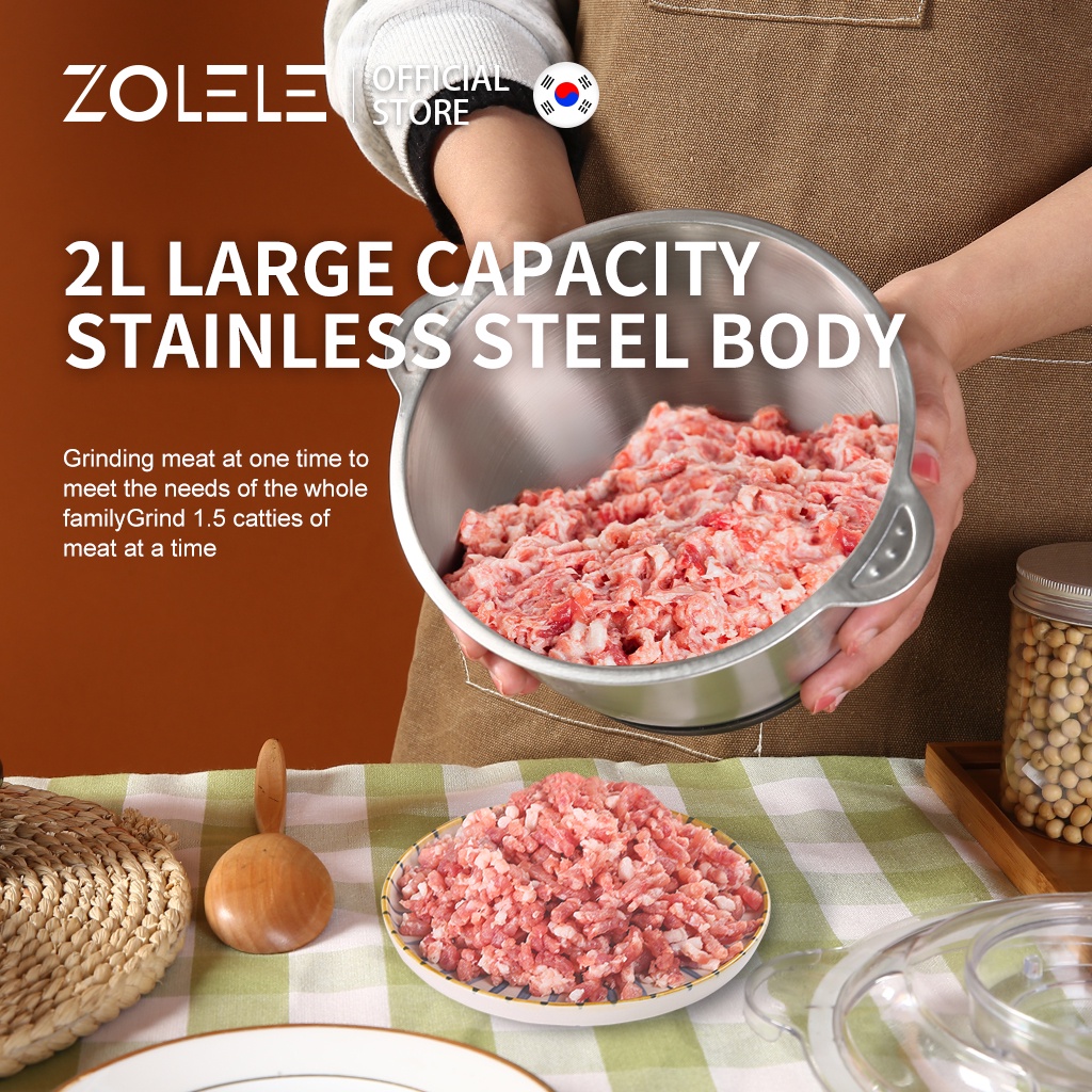 [Mã ELHADEV giảm 4% đơn 300K] Máy xay thịt ZOLELE ZD002 Dung tích lớn 2L xay thịt, cắt rau củ, khuấy, đánh trứng