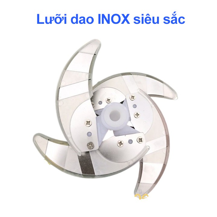 - Lưỡi dao kép 4 cánh sắc bén, được làm bằng thép không rỉ có khả năng chống ăn mòn tốt, đảm bảo vệ sinh và an toàn cho sức khỏe, mang đến khả năng xay nhuyễn nhanh chóng và đều nhiều loại thực phẩm khác nhau.