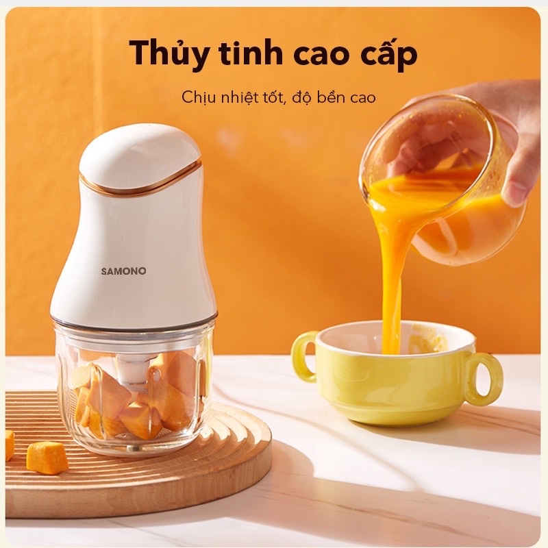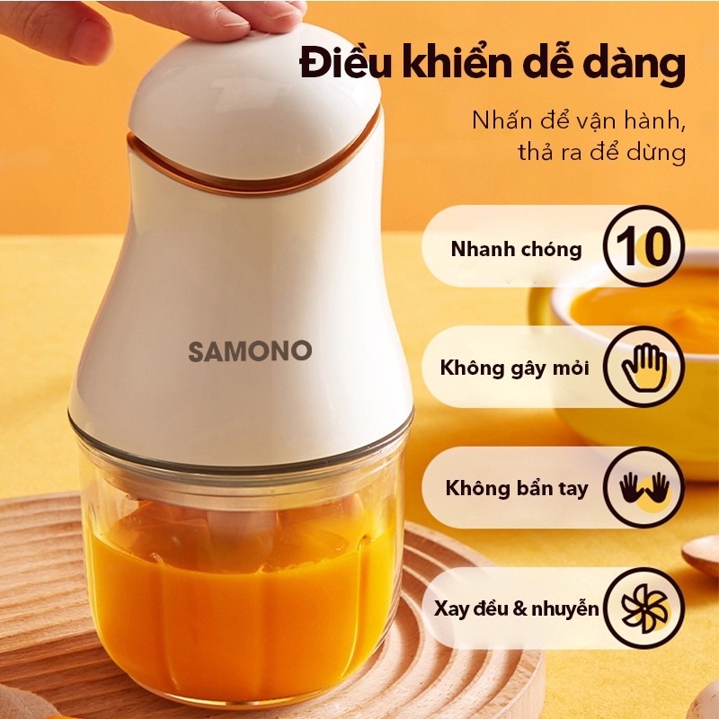 MÁY XAY THỰC PHẨM ĐA NĂNG SAMONO SW099 CÔNG SUẤT 200W - BẢO HÀNH 12 THÁNGVới SAMONO #SW099, bạn có thể xay sinh tố, xay/băm nhuyễn các loại gia vị thảo mộc, đánh kem, đánh trứng, v.v…..Đặc biệt, mẹ nào nhà có còn nhỏ, đang trong quá trình ăn dặm, thì phiên bản mini này khá phù hợp, dung tích 300ml, vừa đủ để đảm bảo các bé lúc nào cũng có thức ăn nóng sốt.
