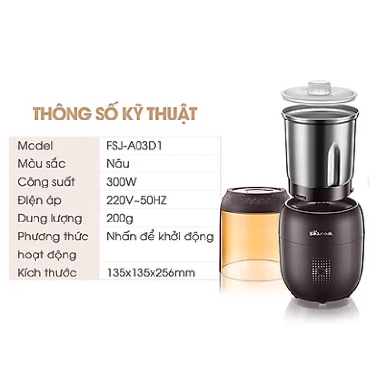 Thiết Bị Điện Gia Dụng > Đồ gia dụng nhà bếp > Máy chế biến thực phẩm & Xay thịt || Máy xay thực phẩm khô Bear FSJ-A03D1S - Hàng Chính Hãng, bao bì không đẹpCòn hàng