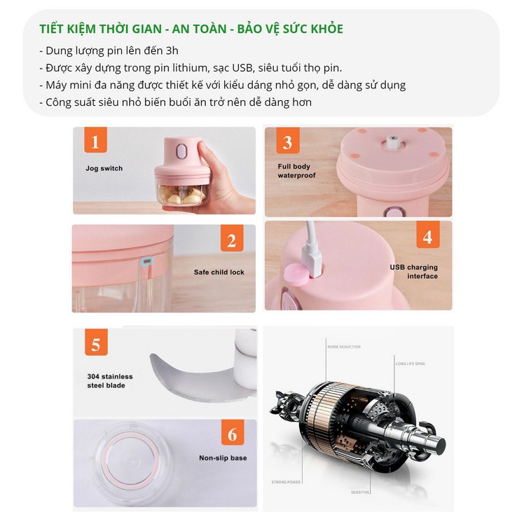 Máy Xay Thực Phẩm Nạp SạcĐẶC ĐIỂM NỔI BẬT :