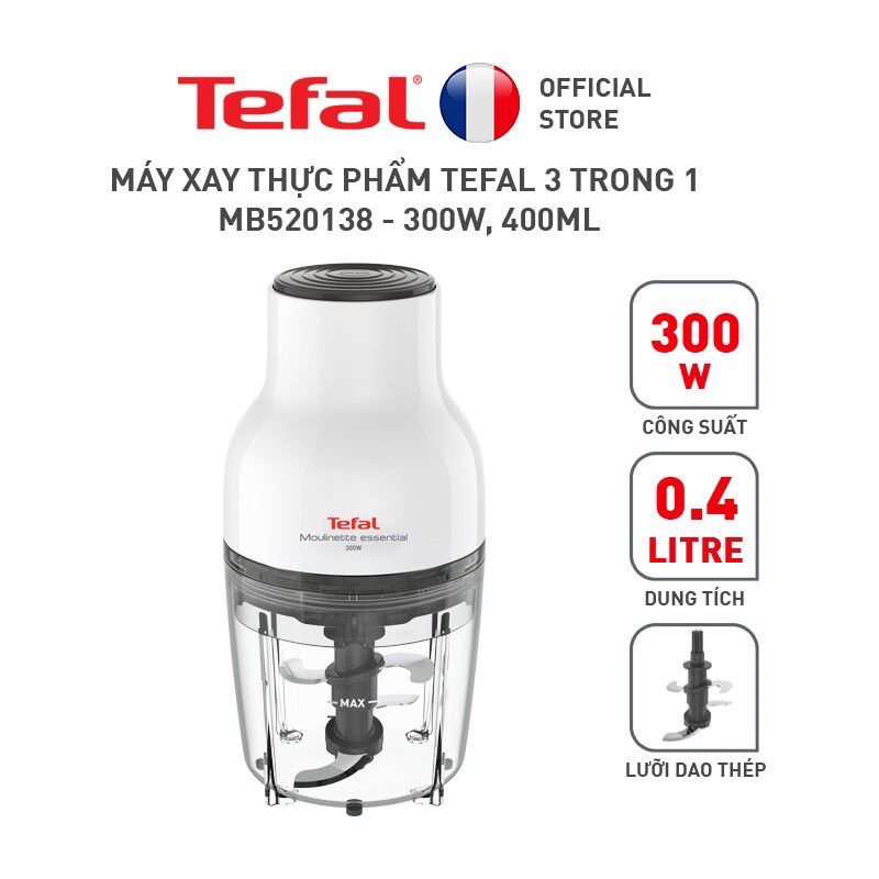 Thiết Bị Điện Gia Dụng > Đồ gia dụng nhà bếp > Máy chế biến thực phẩm & Xay thịt || Máy xay thực phẩm Tefal 3 trong 1 MB520138 - 300W, 400ml bảo hành 2 năm chính hãngCòn hàng