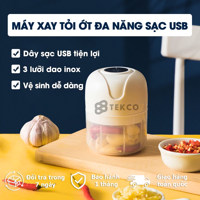 Máy Xay Thực Phẩm (Tỏi, Ớt, Gừng, Thịt, Cá,...) Cầm Tay Đa Năng Cổng USB - Dụng Cụ Xay Nghiền Tỏi Ớt Sạc Pin (Trắng)