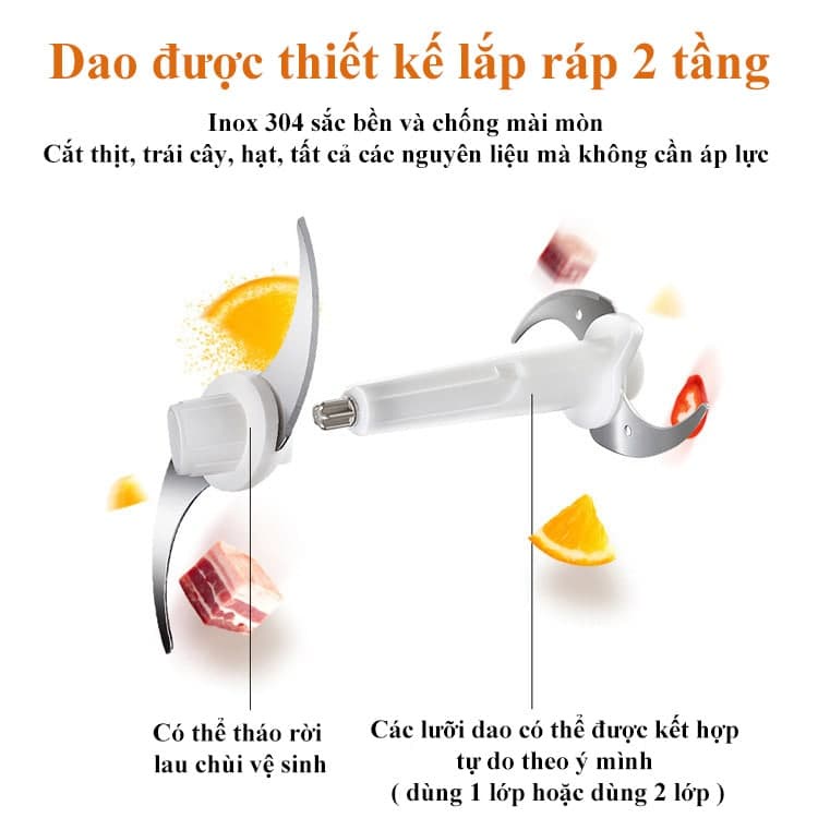 🍒 Hệ thống motor máy xay siêu bền và vận hành rất êm hơn so với các dòng máy xay có trên thị trường, hệ thống tự ngắt khi quá nhiệt hay quá tải an toàn cho motor không bị cháy, nên tuổi thọ máy rất lâu. 4 lưỡi dao xay bằng thép siêu bén, cối xay bằng chất liệu rất an toàn cho người dùng và chống va đập tốt. Cối xay thịt lớn giúp bạn có thể xay 300g thịt chỉ mất vài giây vì cối được thiết kế với 4 lưỡi dao chắc chắn chống gỉ sét xay kết hợp.