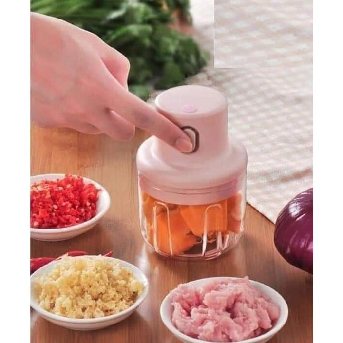 MÁY XAY TÍCH ĐIỆN MINI CẦM TAY 250ML. Máy Xay ớt tỏi rất tiện😍 Tích điện, nhỏ gọn nên rất tiện lợi khi mang đi.MÁY XAY TÍCH ĐIỆN MINI CẦM TAY 250ML mẫu mới xinh ko ce ơiiCó tích điện, nhỏ gọn nên rất tiện lợi khi mang theo người khi đi xa, nhất là mẹ cần xay đồ cho con nhỏ.