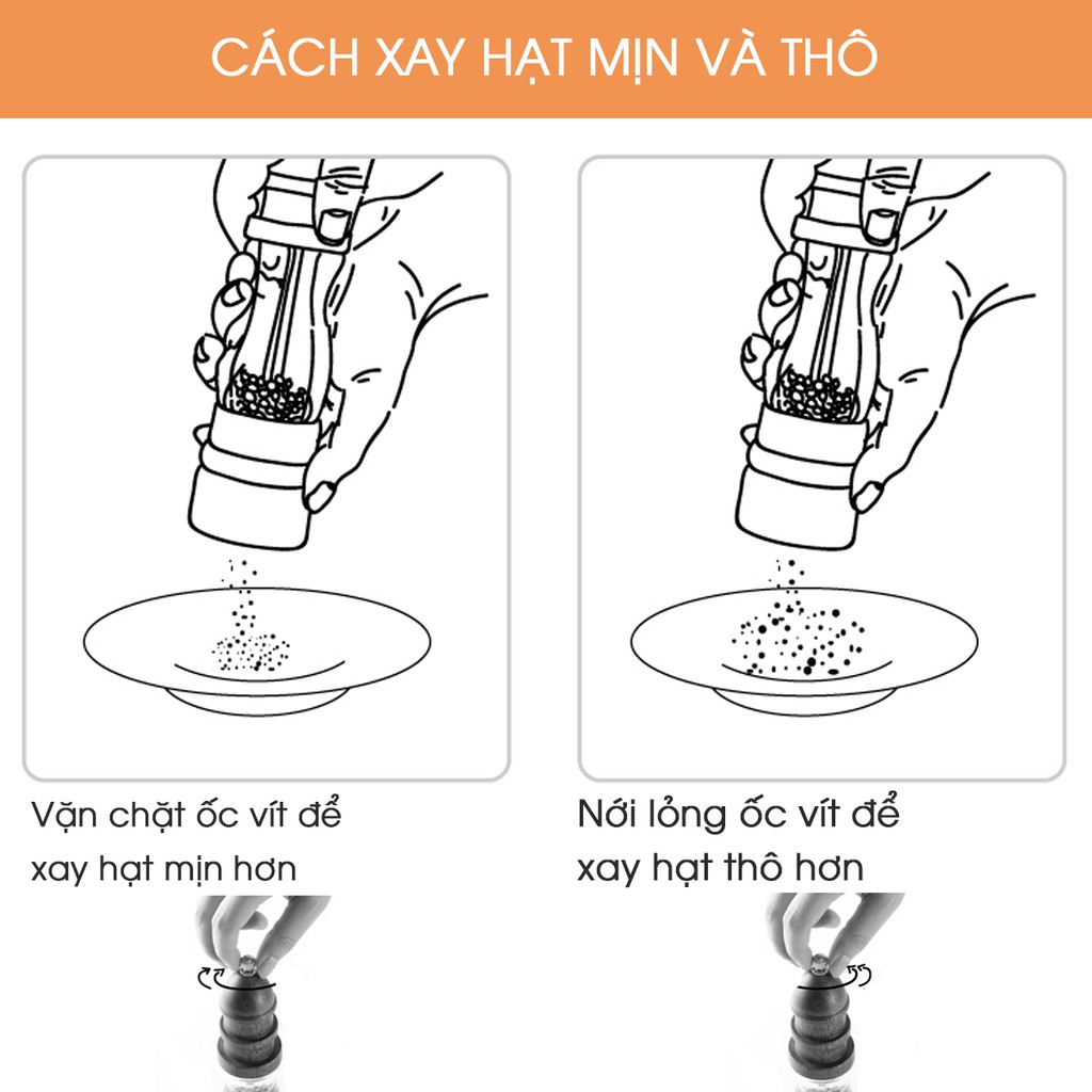 Đồ xay tiêu cầm tay phù hợp sử dụng cho việc xay hạt tiêu khô, muối, ớt khô, hạt gia vị khô...