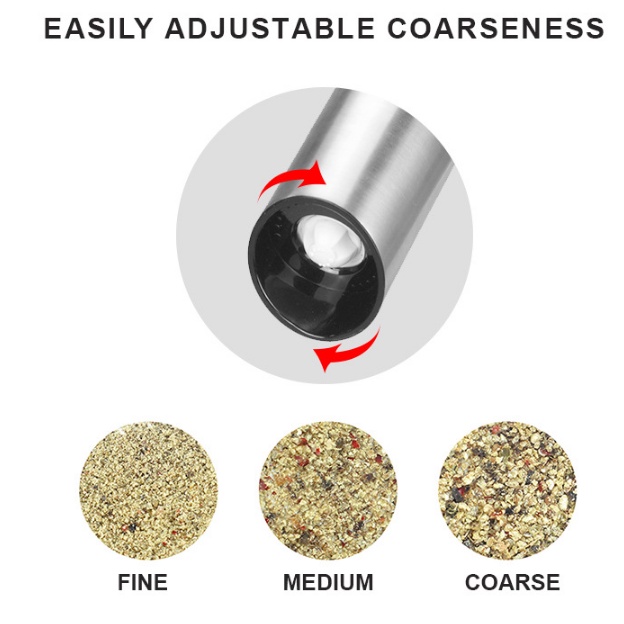 Máy xay tiêu tự động sử dụng pin sạc vỏ inox cao cấpChức năng sử dụng để xay tiêu, tự động xay khi sử dụng, xay được với các độ nhuyễn khác nhau theo sở thích bằng núm vặn.