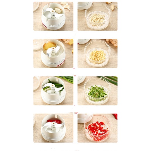 🌰Giữ một tay, và kéo dây để xay tỏi ớt.