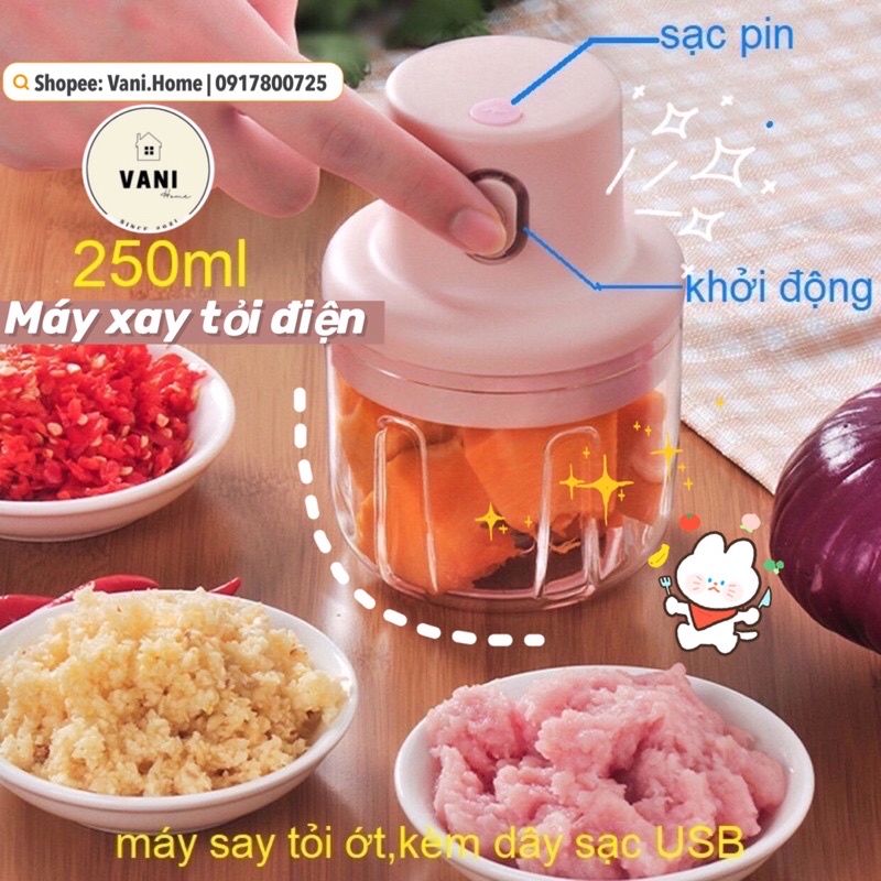 Thiết Bị Điện Gia Dụng > Đồ gia dụng nhà bếp > Máy chế biến thực phẩm & Xay thịt || Máy xay tỏi ớt bằng điện cầm tay mini tiện dụng - Máy xay đa năng 250mlCòn hàng