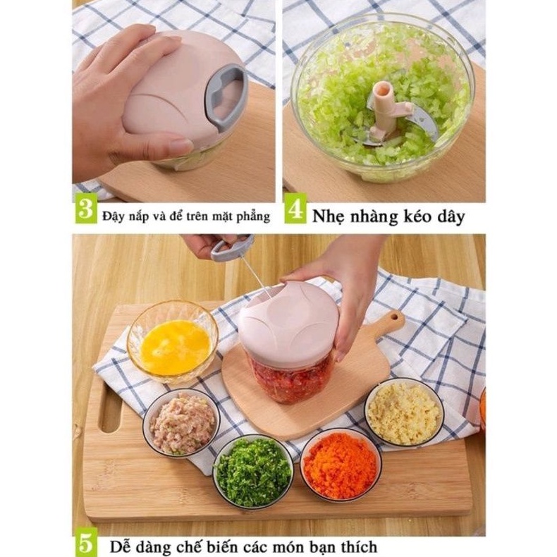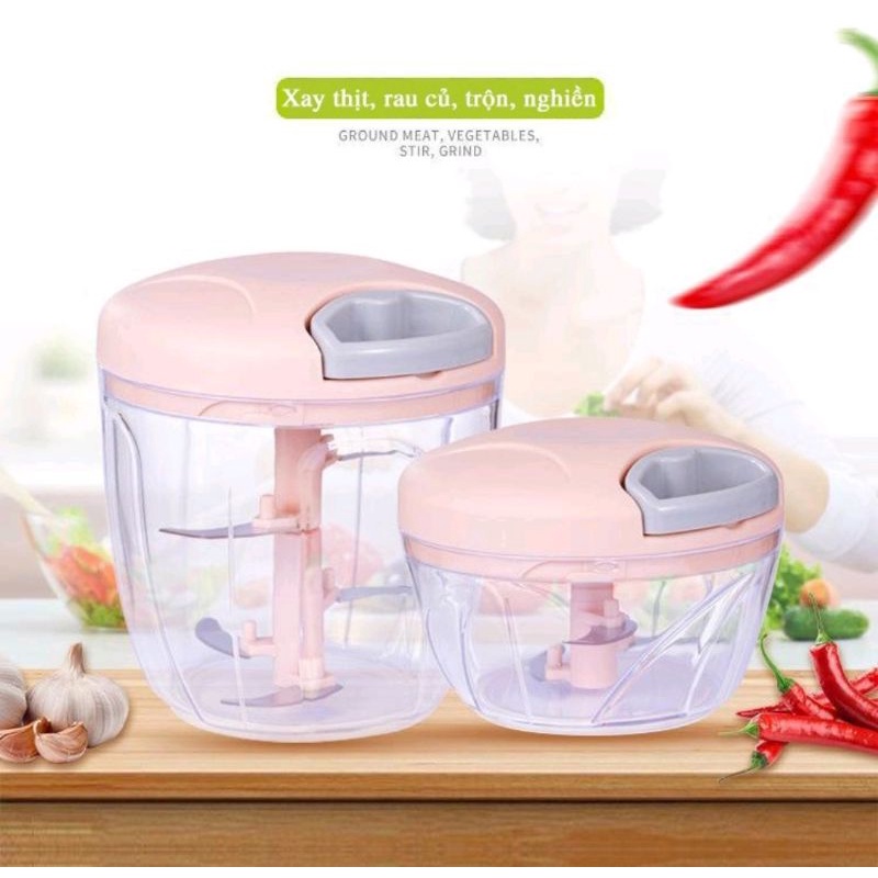 Mô tả sản phẩm : Máy xay tỏi ớt rau củ quả mini kéo tay- Màu sắc máy xay tỏi ớt : xanh lá, hồng