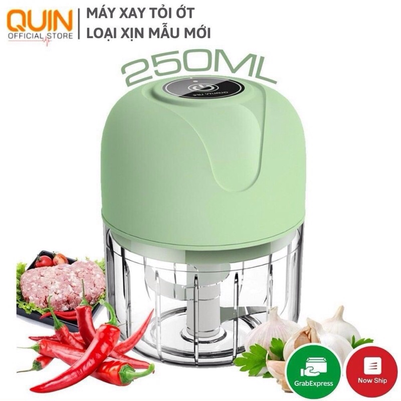 Máy Xay Tỏi Ớt Cầm Tay Mini, Xay Đá, Xay Thịt, Băm Rau Củ 250ml Cổng Sạc USB 3 Lưỡi Dao Tiện Lợi