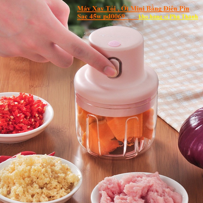 Máy Xay Tỏi , Ớt Mini Bằng Điện Pin Sạc 45w pd0069Máy xay tỏi ớt cầm tay mini là món đồ gia dụng thông minh rất cần thiết khi bạn phải băm nhiều hành, tỏi, ớt cùng một lúc. Nó vừa giúp gia vị được xay nhuyễn nhanh chóng, vừa hạn chế tình trạng cay mắt, bỏng rát, khó chịu. Để hiểu rõ hơn về những ưu điểm vượt trội của sản phẩm này, hãy cùng gia dụng nhanh khám phá ngay sau đây nhé