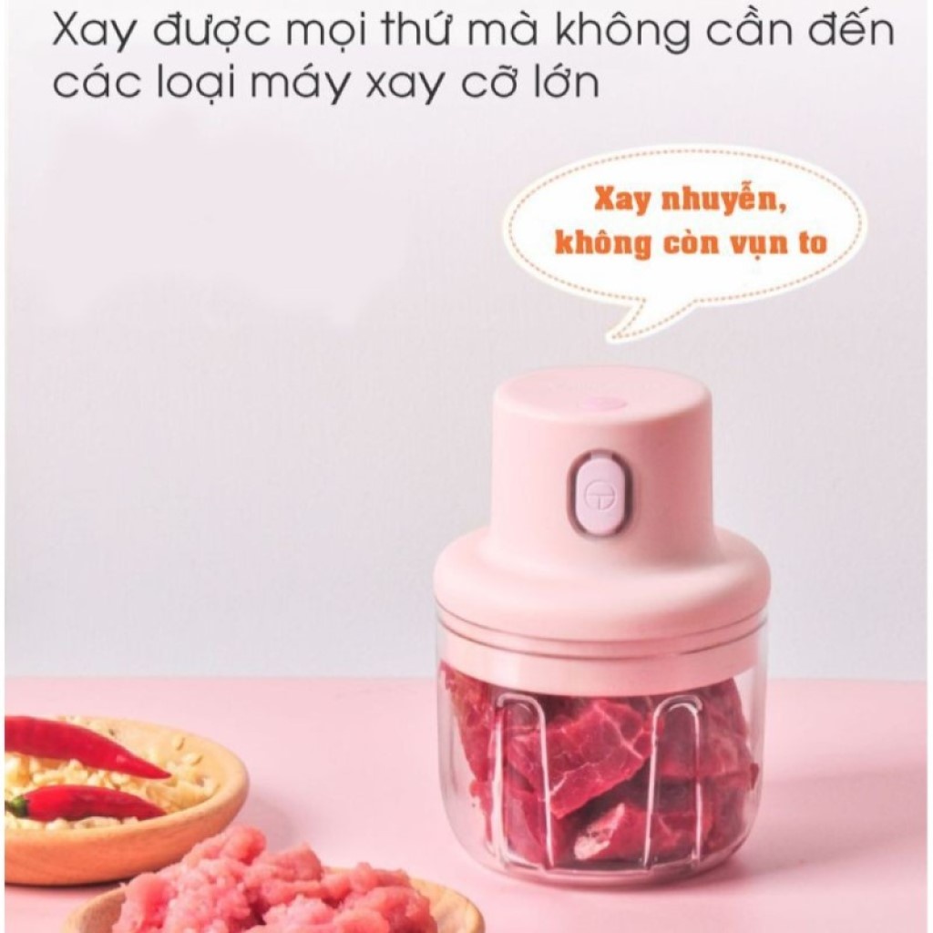 Máy xay tỏi ớt cầm tay mini bằng điện đa năng Dung tích 250ml Sạc điện cổng USB siêu tiện lợi