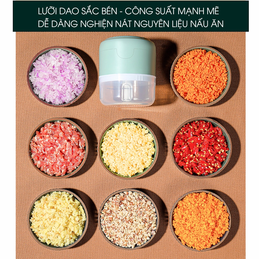 Máy Xay Tỏi Ớt Đa Năng Không Dây Cầm Tay Cao Cấp, Công Suất Mạnh, Lưỡi Dao Sắc Bén