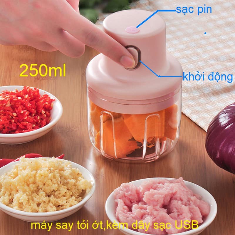 Máy Xay Tỏi Ớt Đa Năng Thể Tích 250ml - Máy Xay Mini Cầm Tay Có Cổng Sạc Usb