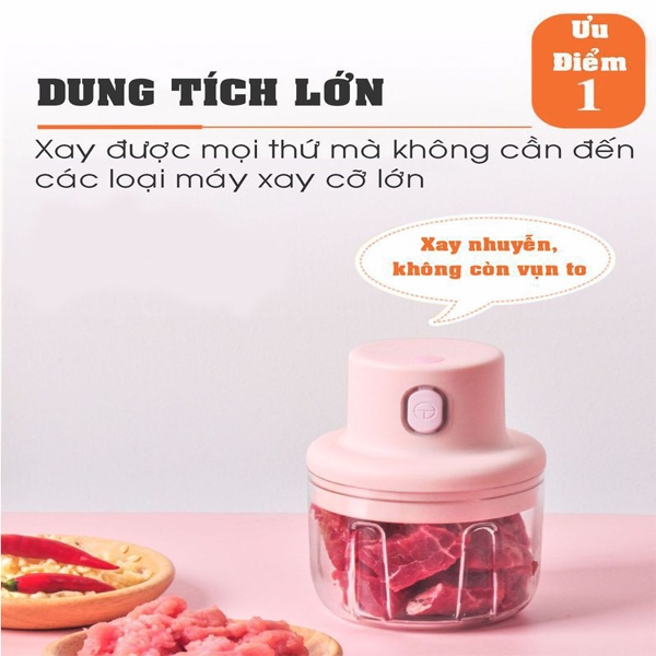 👉 Nhỏ gọn, tiện lợi, đa năng, xay được nhiều loạt thịt, tỏi, ớt, củ quả...
