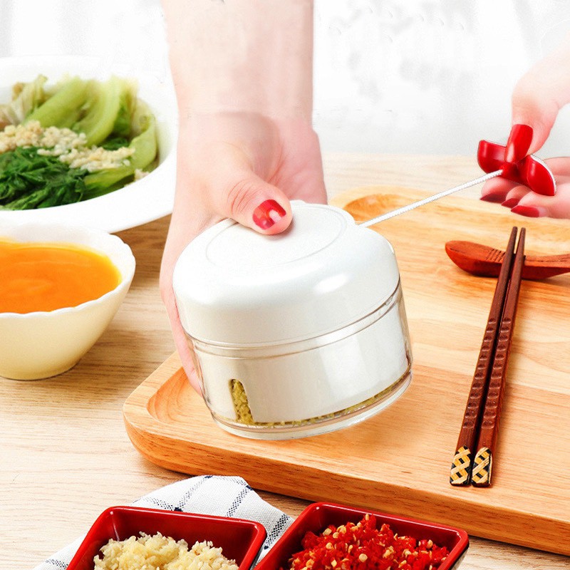 Cực dễ dàng, chỉ cần cho đồ vào, đậy nắp, kéo & thả phần dây kéo liên tục, dây kéo sẽ làm quay lưỡi cắt bên trong, xay nhuyễn đồ ăn không hề vất vả. Dùng được mọi lúc mọi nơi, ko cần điện.