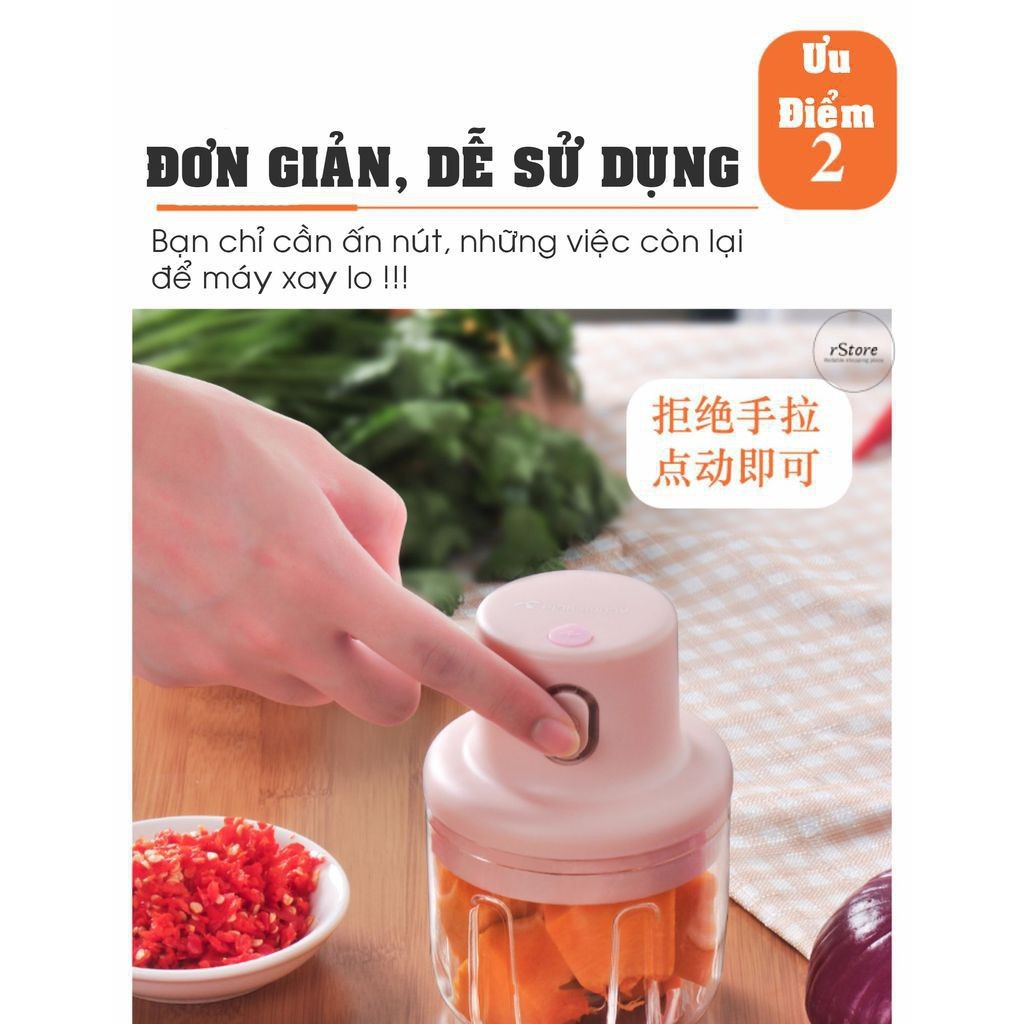 Giới thiệu Máy Xay Tỏi Ớt Máy Xay Thịt Dung tích 250ml - sạc USB Cầm tay Tiện dụng