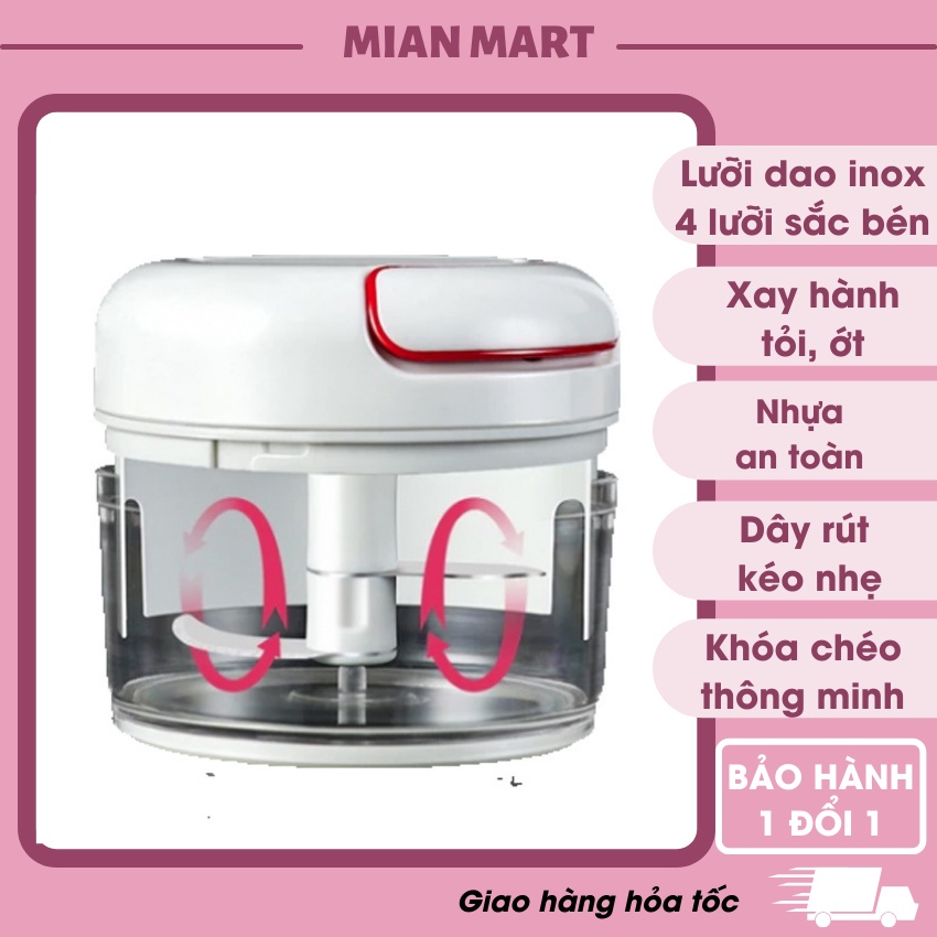 Xay tỏi ớt mini bằng tay Mini Food Chopper, máy xay thịt thực phẩm - Mian martMian mart cam kết giao hàng ĐÚNG ĐỦ theo đơn khách hàng đặt, kiểm tra hàng và đóng gói sản phẩm cẩn thận trước khi giao hàng cho bên vận chuyển.