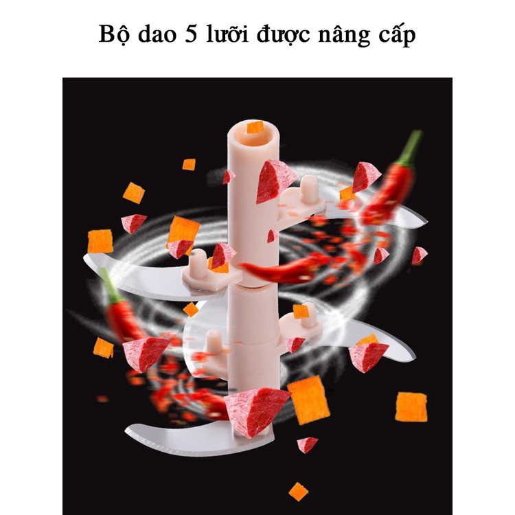 Máy xay tỏi ớt mini cầm tay 2 size 500, 900ml nghiền nhuyễn trong vòng 5s với 5 lưỡi dao thép không gỉ MXM02