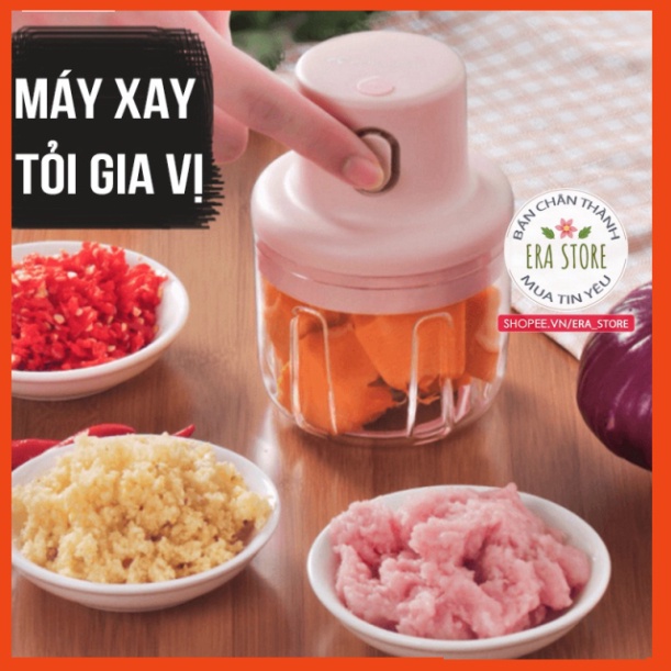 THÔNG TIN SẢN PHẨM:- Tên sản phẩm: Máy Xay Tỏi Ớt Mini Cầm Tay Thể Tích 250ml - Máy Xay Đa Năng Pin Trâu Lưỡi Thép 3 Cánh Quay Nhanh Không Gỉ, Dễ Sử Dụng