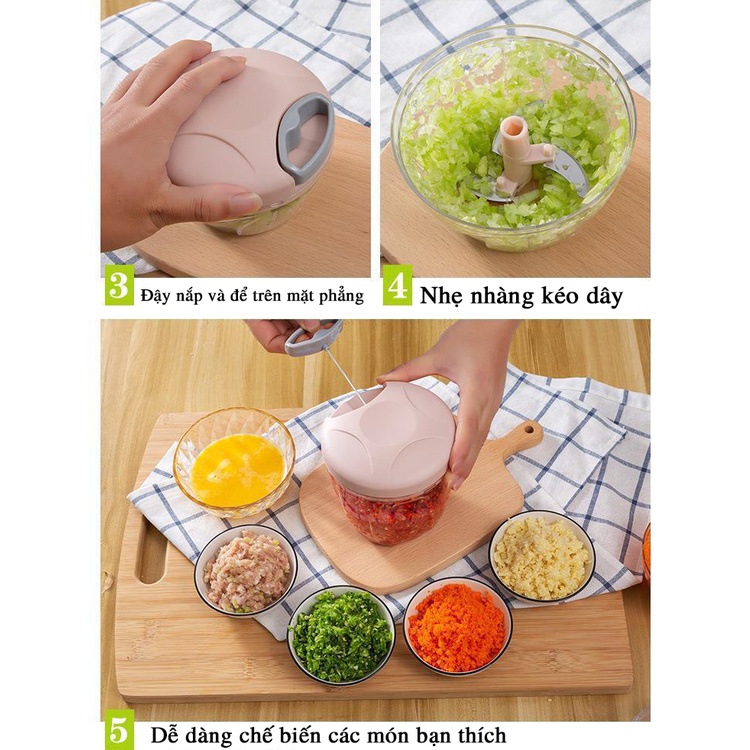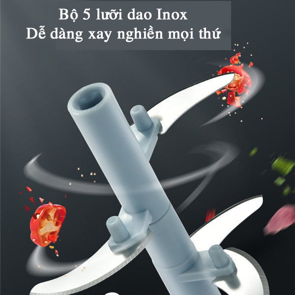 Máy xay tỏi ớt mini cầm tay JIASHI 2 size 500, 900ml nghiền nhuyễn trong vòng 5s với 5 lưỡi dao thép không gỉ MXM02