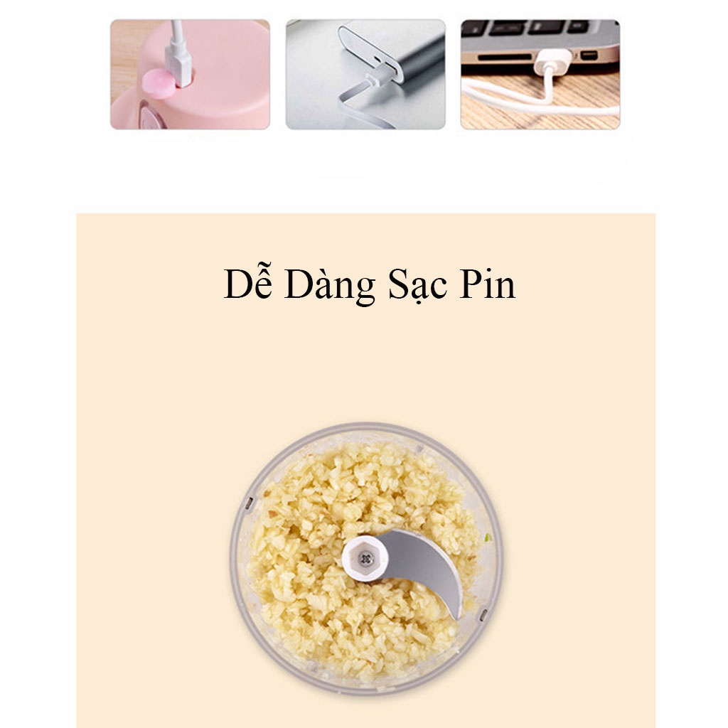 Máy Xay Tỏi Ớt Mini, Củ Quả Đa Năng, Đồ Ăn Dặm Sạc USB Tiện Dụng - Máy Xay Thịt Cầm Tay Mini