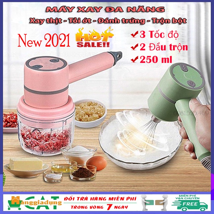 Thiết Bị Điện Gia Dụng > Đồ gia dụng nhà bếp > Máy chế biến thực phẩm & Xay thịt || Máy xay tỏi ớt mini kiêm máy đánh trứng cầm tay 3 trong 1, máy xay thực phẩm 3 tốc độ, 2 đầu trộn bột, đánh kem, 250mlCòn hàng