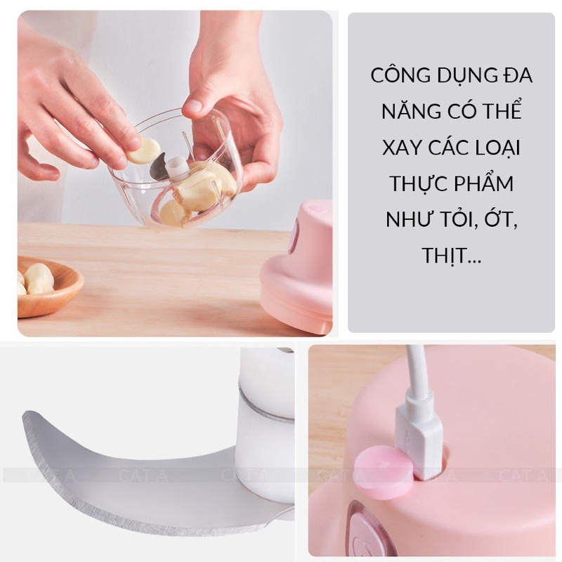 Máy Xay tỏi ớt Mini - Máy xay đa năng Sạc Điện Usb, Nhỏ Gọn Dung Tích 250ml Tiện Ích Dễ Sử Dụng - Gia Dụng Tân Thanh