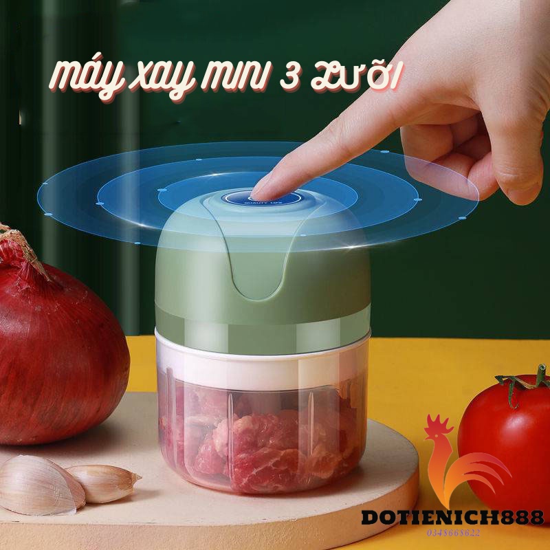 Thiết Bị Điện Gia Dụng > Đồ gia dụng nhà bếp > Máy ép, Xay sinh tố & Máy làm sữa đậu nành || Máy Xay Tỏi Ớt Mini Sạc Điện 3 Lưỡi, Có Cổng Sạc Usb, dung tích 250ml công xuất 50wCòn hàng