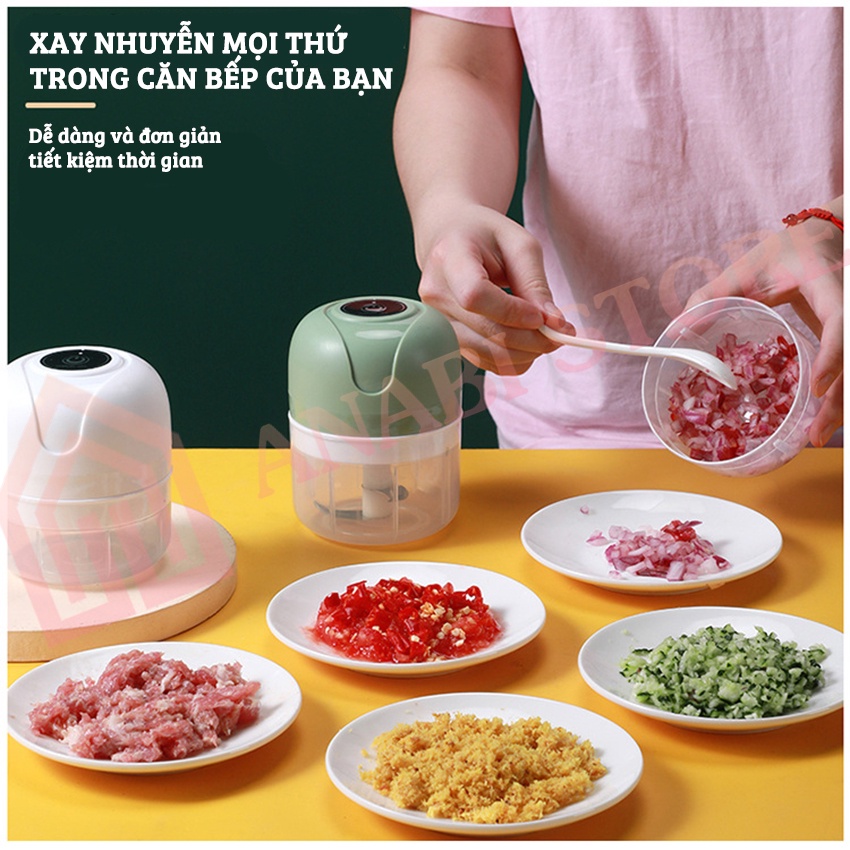 Máy Xay Tỏi Ớt Mini Tích Điện ANABI 250ML - Máy Nghiền CS 300W - Xay Thịt, Rau, Củ, Đồ Ăn Dặm - Xay Thế Hệ Mới