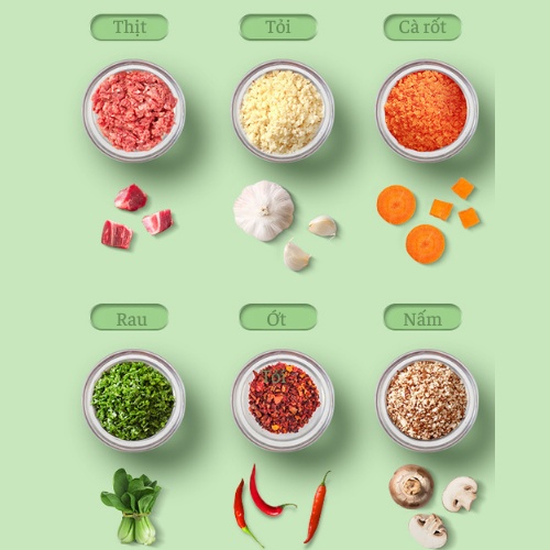 - Dùng để xay tỏi, ớt, các loại gia vị dạng hạt/lỏng