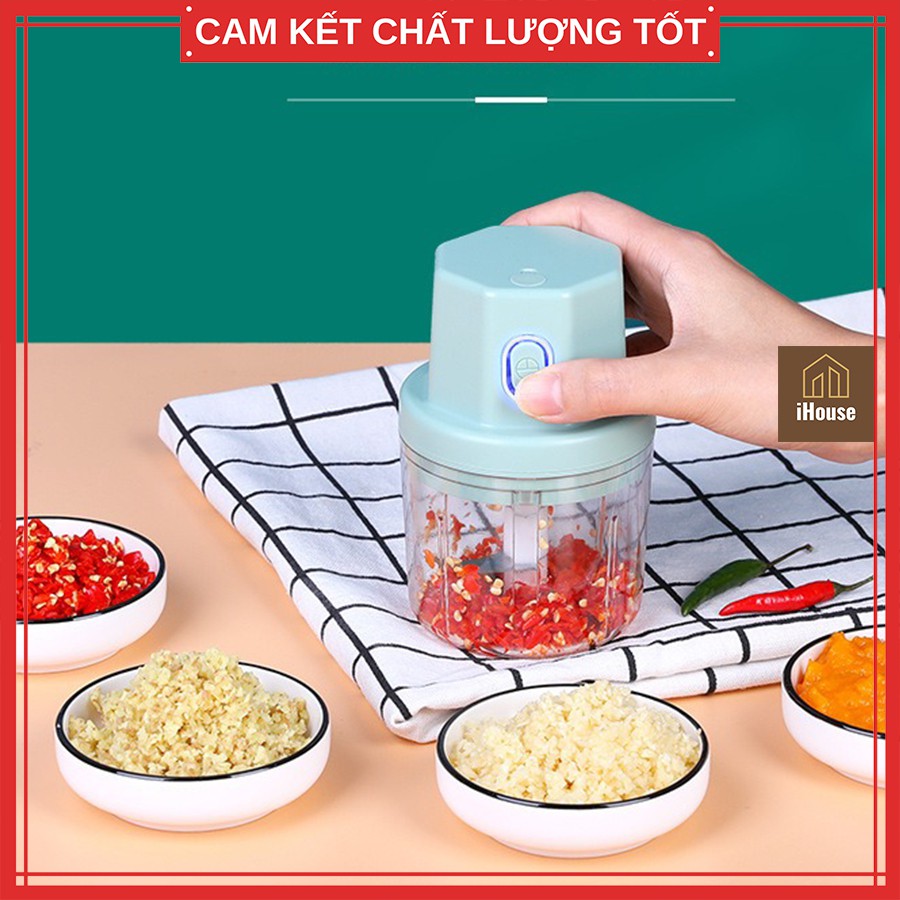 Máy xay tỏi ớt mini xạc pin đa năng tiện dụng, Máy xay hành tỏi ớt cầm tay loại 1 iHouse