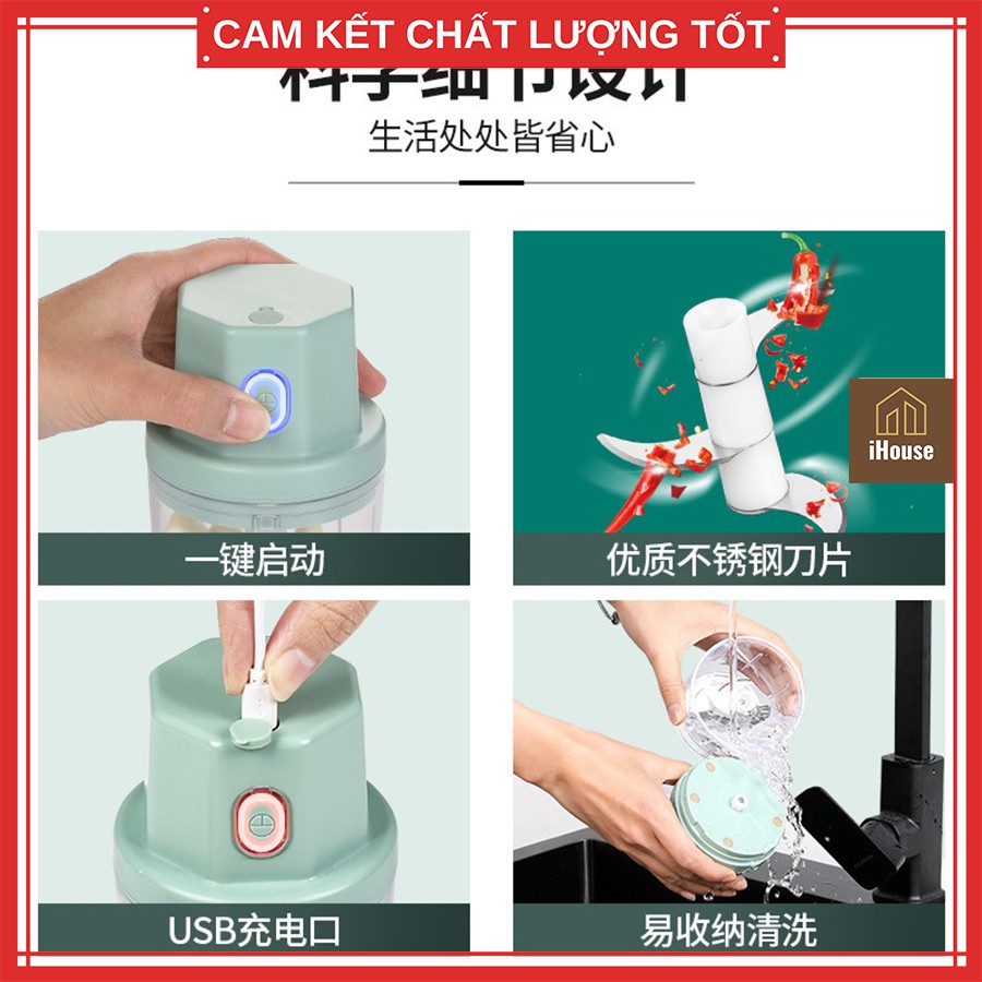 ☘️Máy xay tỏi ớt mini xạc pin đa năng tiện dụng, Máy xay hành tỏi ớt cầm tay loại 1 iHouse🌀CÔNG DỤNG & THÔNG TIN SẢN PHẨM: