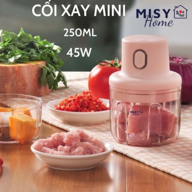Nhà cửa & Đời sống > Dụng cụ nhà bếp > Bàn nạo, dụng cụ bào, cắt || Máy xay tỏi ớt sạc điện pin cầm tay MISY HOME mini 45W 250ml xay gừng, hành, rau, thịt, tiêu, củ quả nhỏ gọnCòn hàng