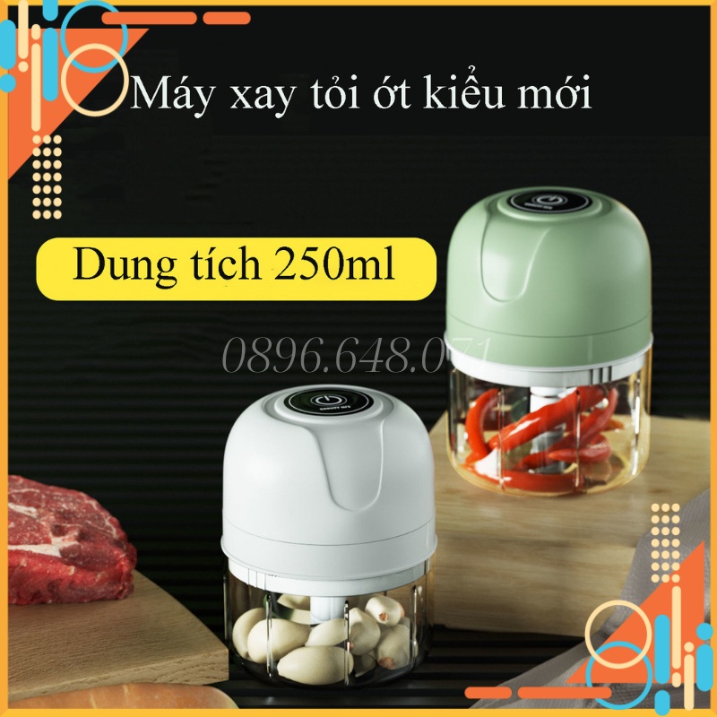 Máy Xay Tỏi Ớt Thịt Cá Đa Năng Mini Cầm Tay Sạc Pin Tích Điện Dung Tích 250ml Tiện LợiHội chị em làm bếp chắc hẳn luôn cảm thấy đáng sợ với công đoạn xay và nghiền nhỏ các loại tỏi ớt vì vừa ám mùi lại nhớp dính đôi bàn tay. Chả vậy mà khi sản phẩm máy xay tỏi ớt cầm tay xuất hiện đã khiến nhiều chị em quan tâm và xôn xao đến thế.