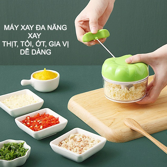 Máy xay tỏi, ớt , thịt cầm tay, lưỡi dao kép làm bằng Inox 304 an toàn cho sức khoẻ
